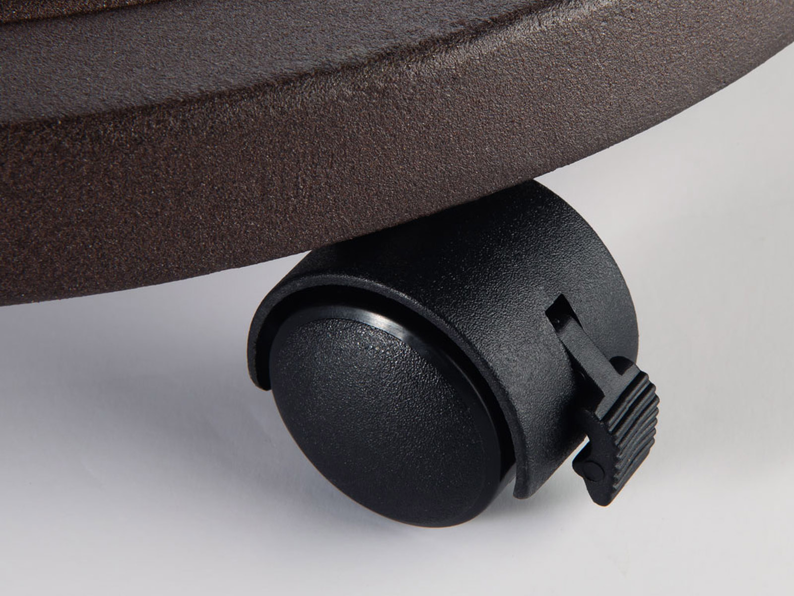 4 darab, műanyagból készült, forgó kerékkel van felszerelve, melyek közül 2 darab kerék fékkel is el van látva. Ennek köszönhetően stabilizálhatjuk az alátétet, hogy véletlenül se guruljon el a növénytartó. A kerekekkel felszerelt görgős állvány segítségével egyszerű lehetőség nyílik arra, hogy a túl nehéz virágcserepeket és növényeket áthelyezzük. Egyben magunkat is megkímélhetjük a súlyos szobanövények emelgetésétől legyen szó a növény ápolásáról vagy a helyiség takarításról-átrendezéséről.