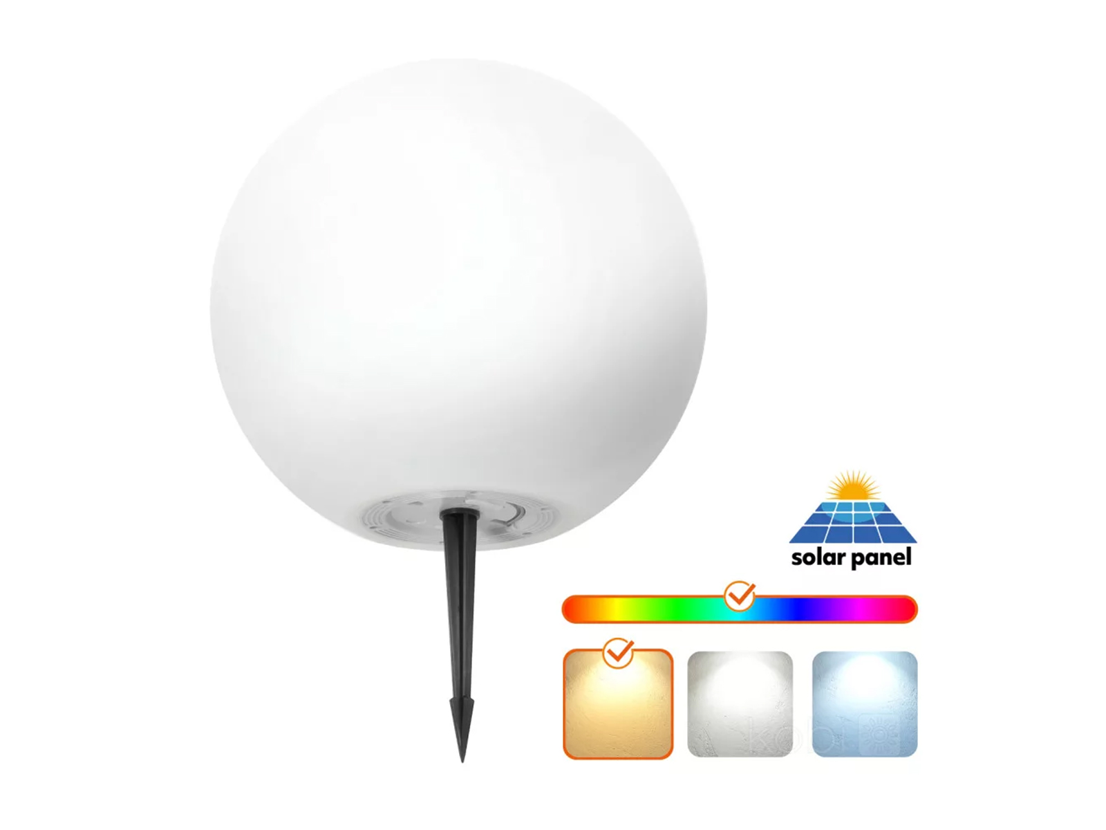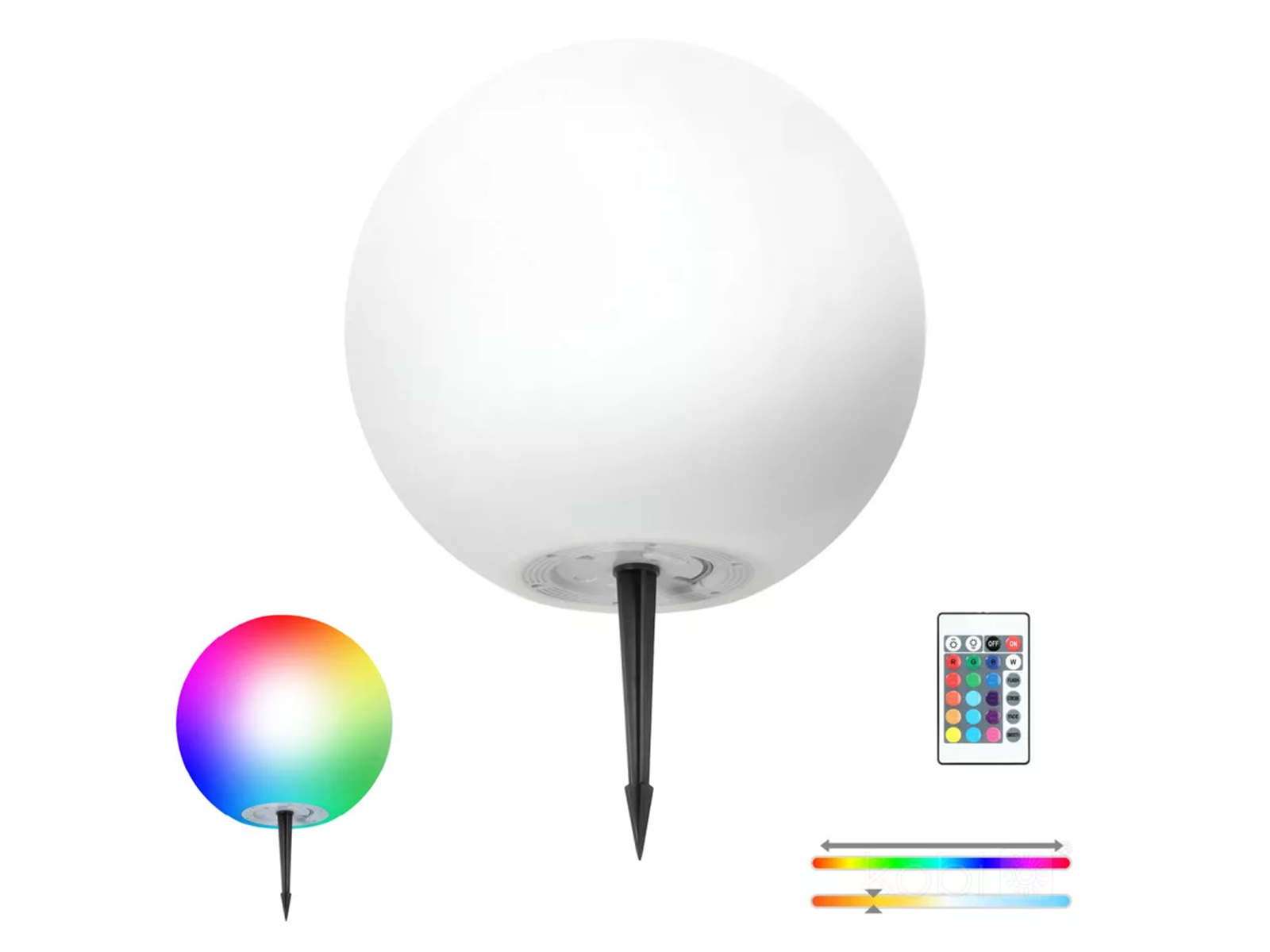 2in1 leszúrható, napelemes szolár LED lámpa - meleg fehér + RGB, gömb formájú, távirányítóval